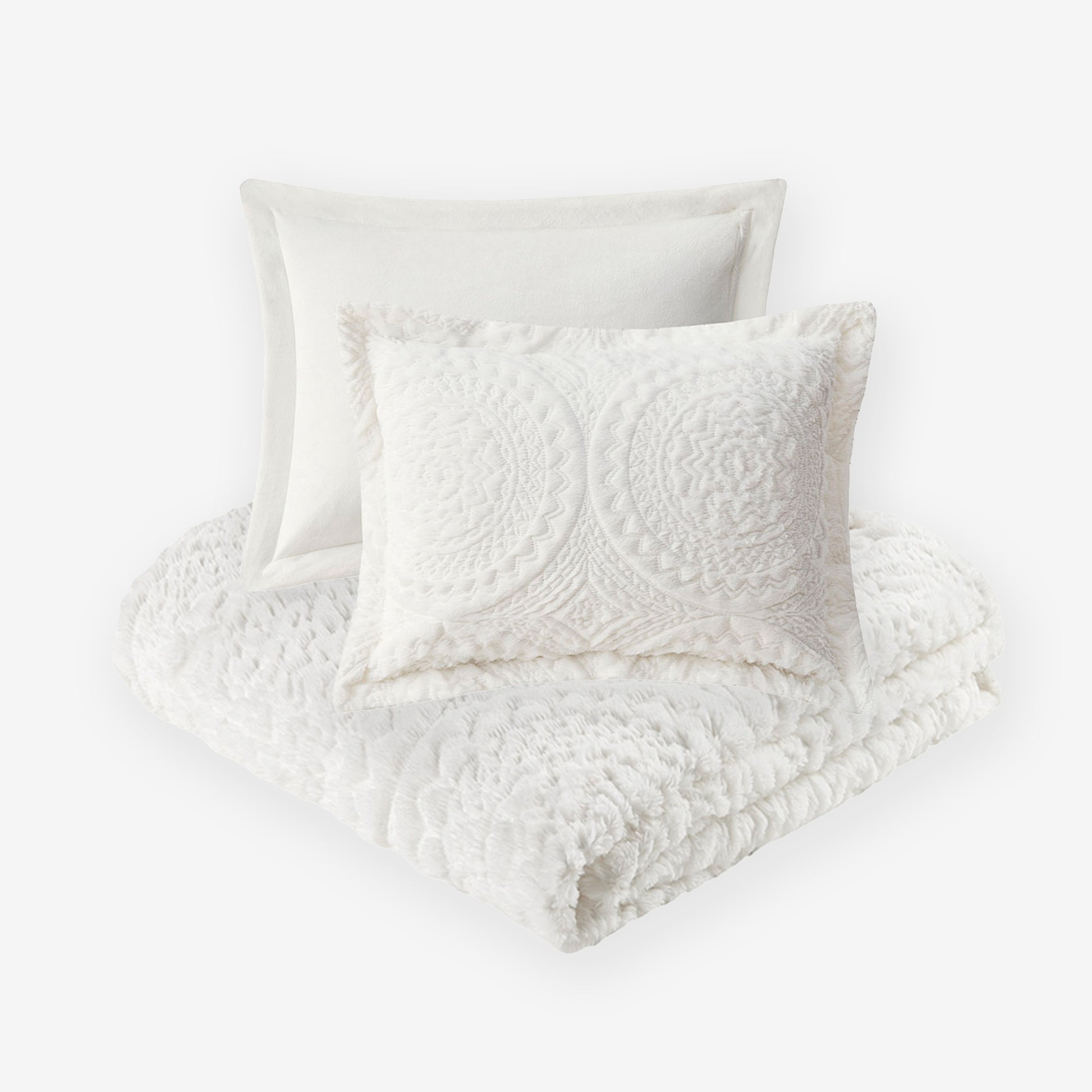 The Madison Park Arya Fur Duvet Cover Mini Set brings an elegent update to your bedroom. The duvet cover and shams (1 in Twin/TwinXL) feature an embroidered medallion design on the ultra-soft plush fabric.