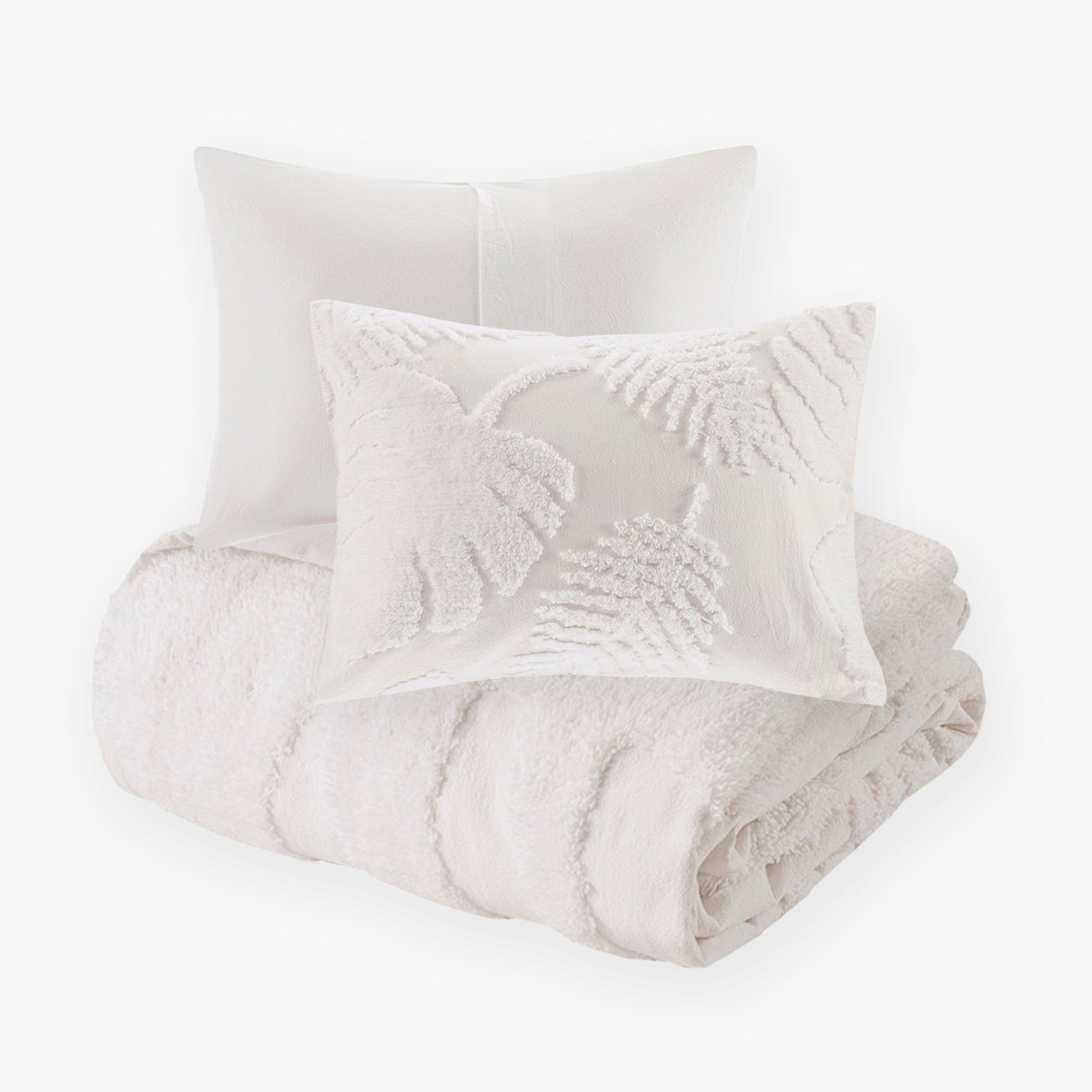 Bring a coastal charm to your bedroom with the Madison Park Bahari 3 Piece Tufted Cotton Chenille Palm Duvet Cover Set. The OEKO-TEX certified cotton chenille duvet cover and shams feature tufted tropical palm leaves, for a coastal allure.