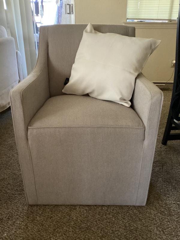 This Charlotte Slipcover Dining Arm Chair is beautiful. It’s very firm and I love the fact it has wheels on the bottom for feet. It rolls anywhere. But, there was a stain on the bottom side which I was surprised to see. Overall I love my new space.