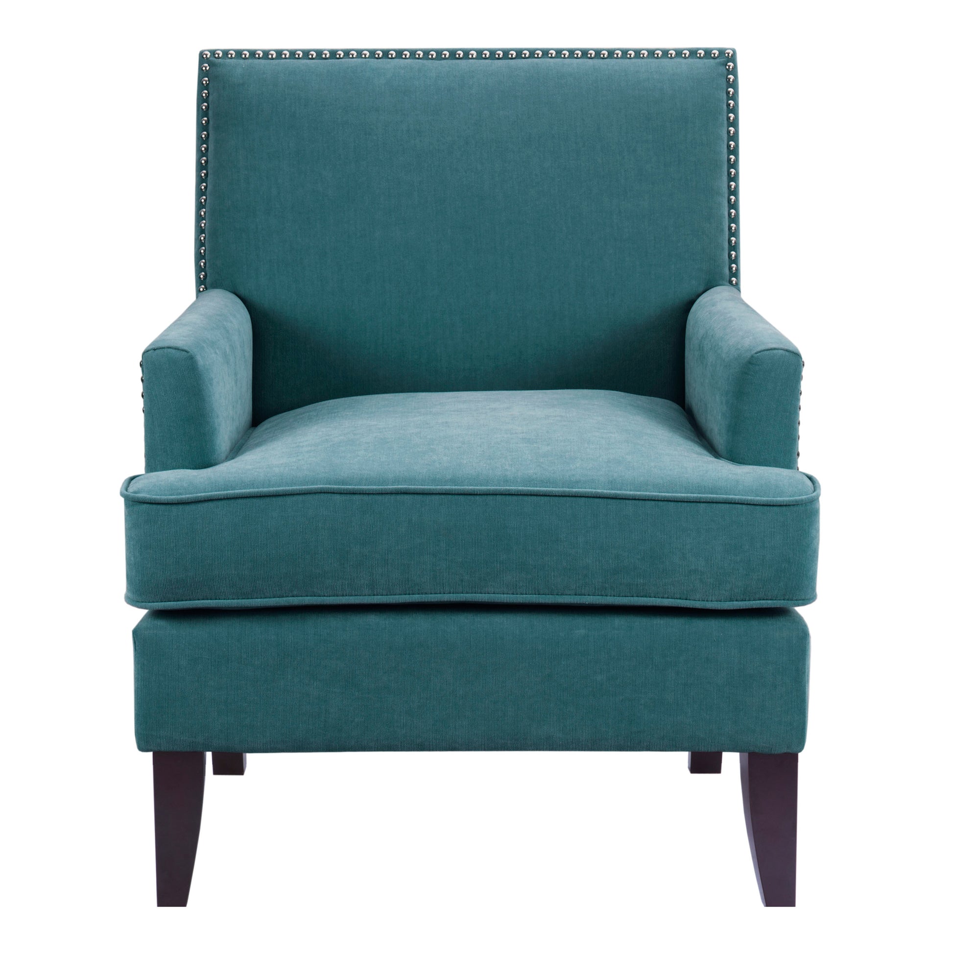 This chair brings a simple and sharp update to your home decor. This accent club chair features a sleek design with track arms and a nailhead trim along the back and sides, adding an elegant touch to the contemporary look.