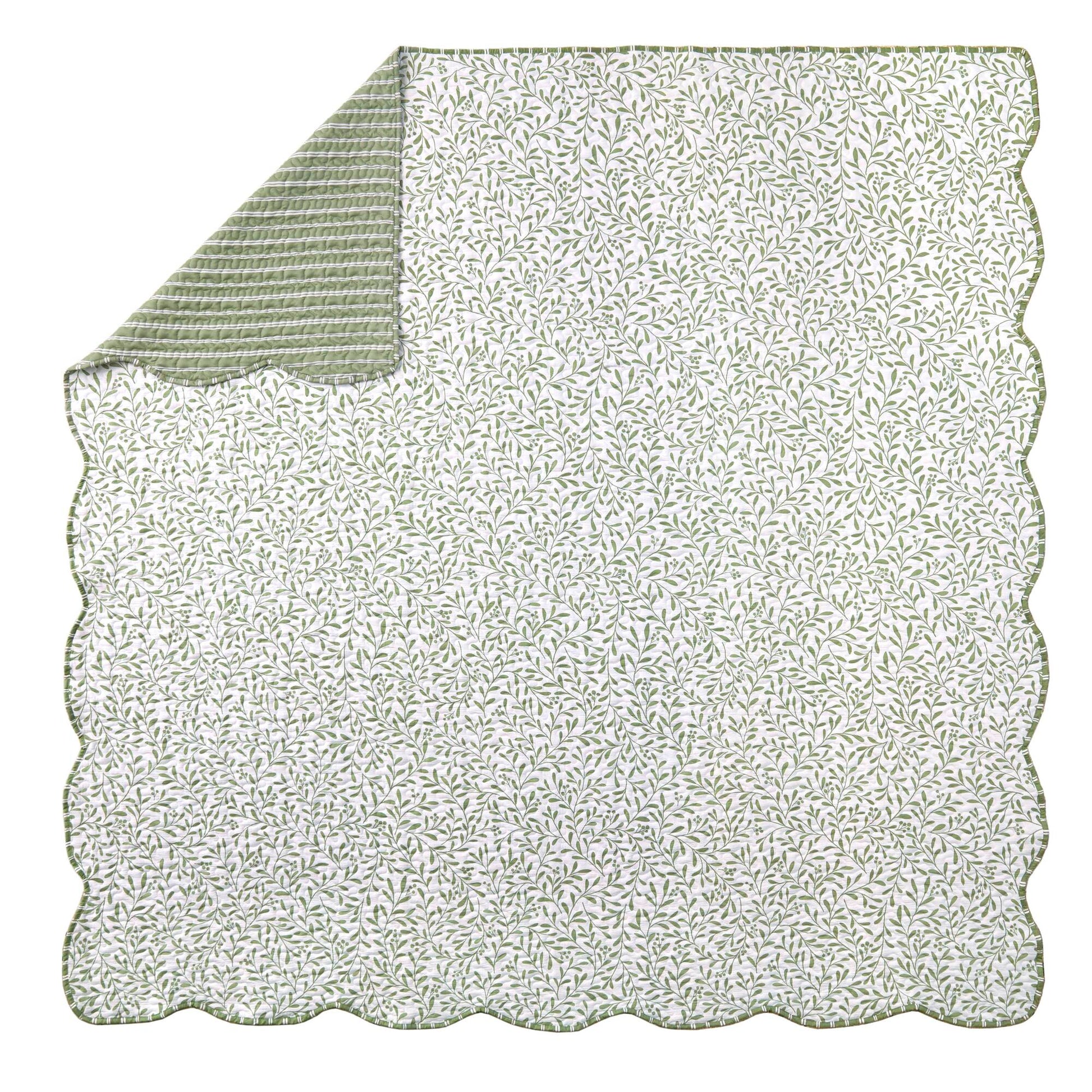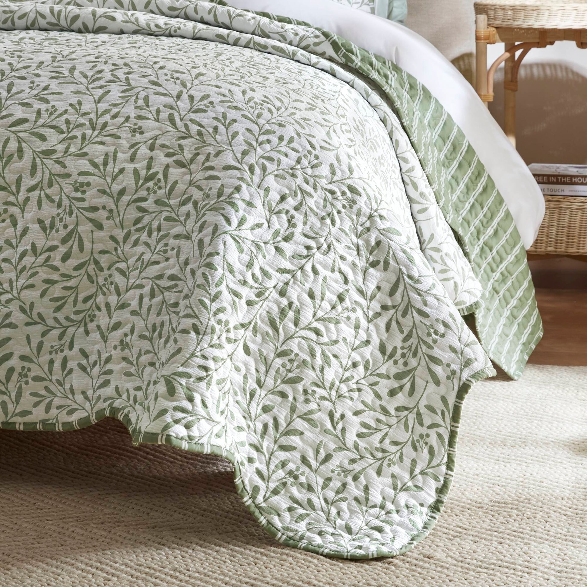 - Instant Room Makeover: You don’t need an interior designer. This set includes one quilt and two matching scalloped shams, instantly pulling your room together. The sage green foliage print is neutral enough to blend with your existing decor while distinct enough to act as a stunning focal point.