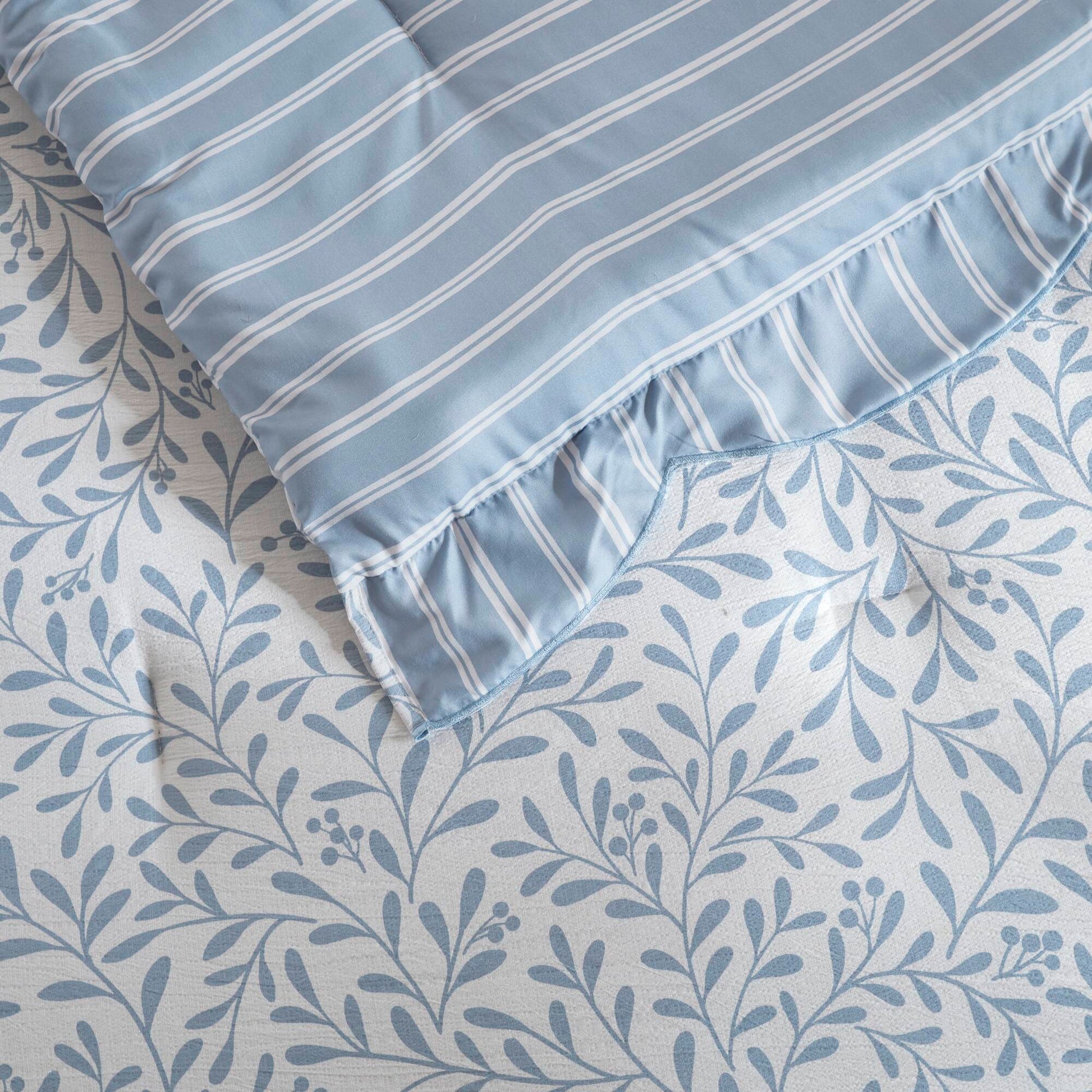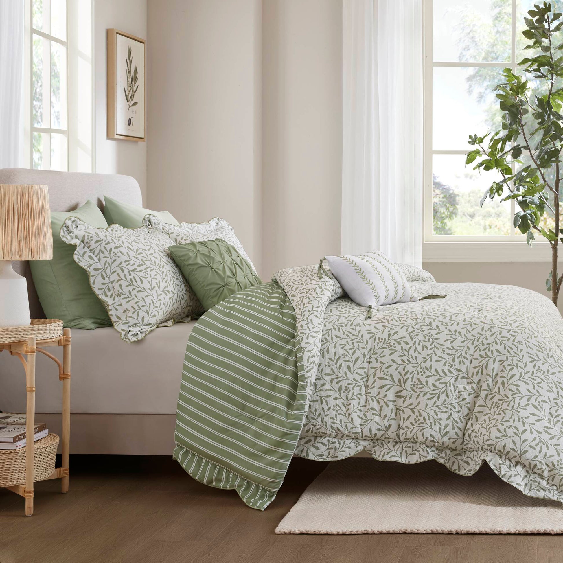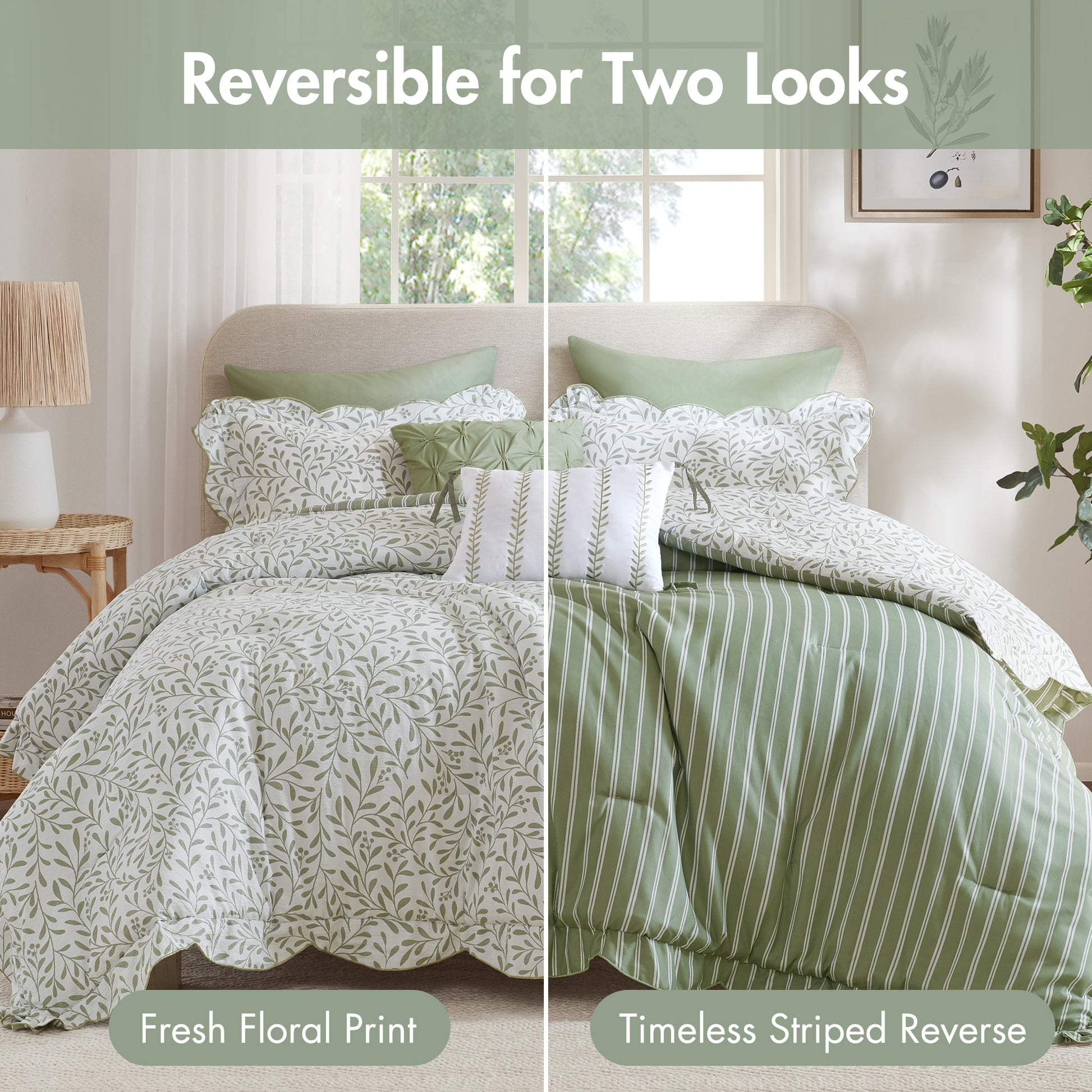 Charming Scalloped Edge Design: Unlike traditional straight borders, this comforter features playful wavy edges that add a touch of vintage elegance and custom detail. The soothing botanical print effortlessly brings a fresh, organic modern farmhouse vibe to your bedroom, creating a serene retreat.