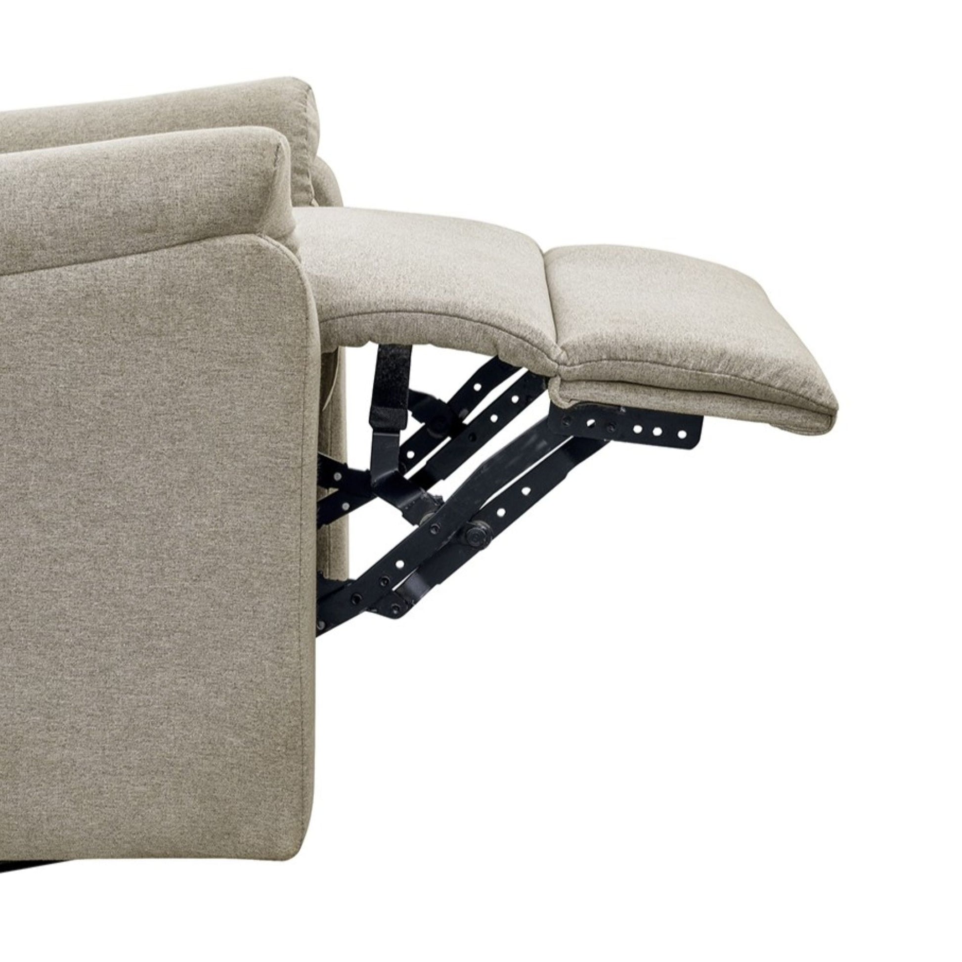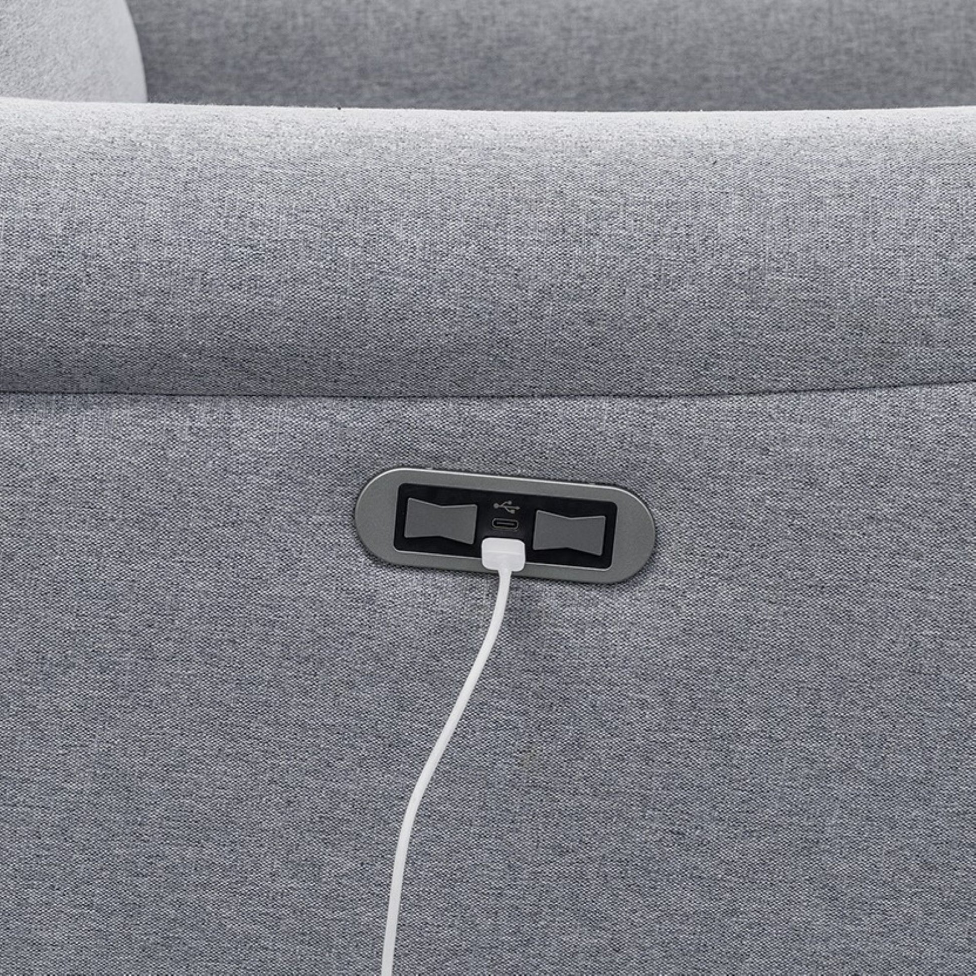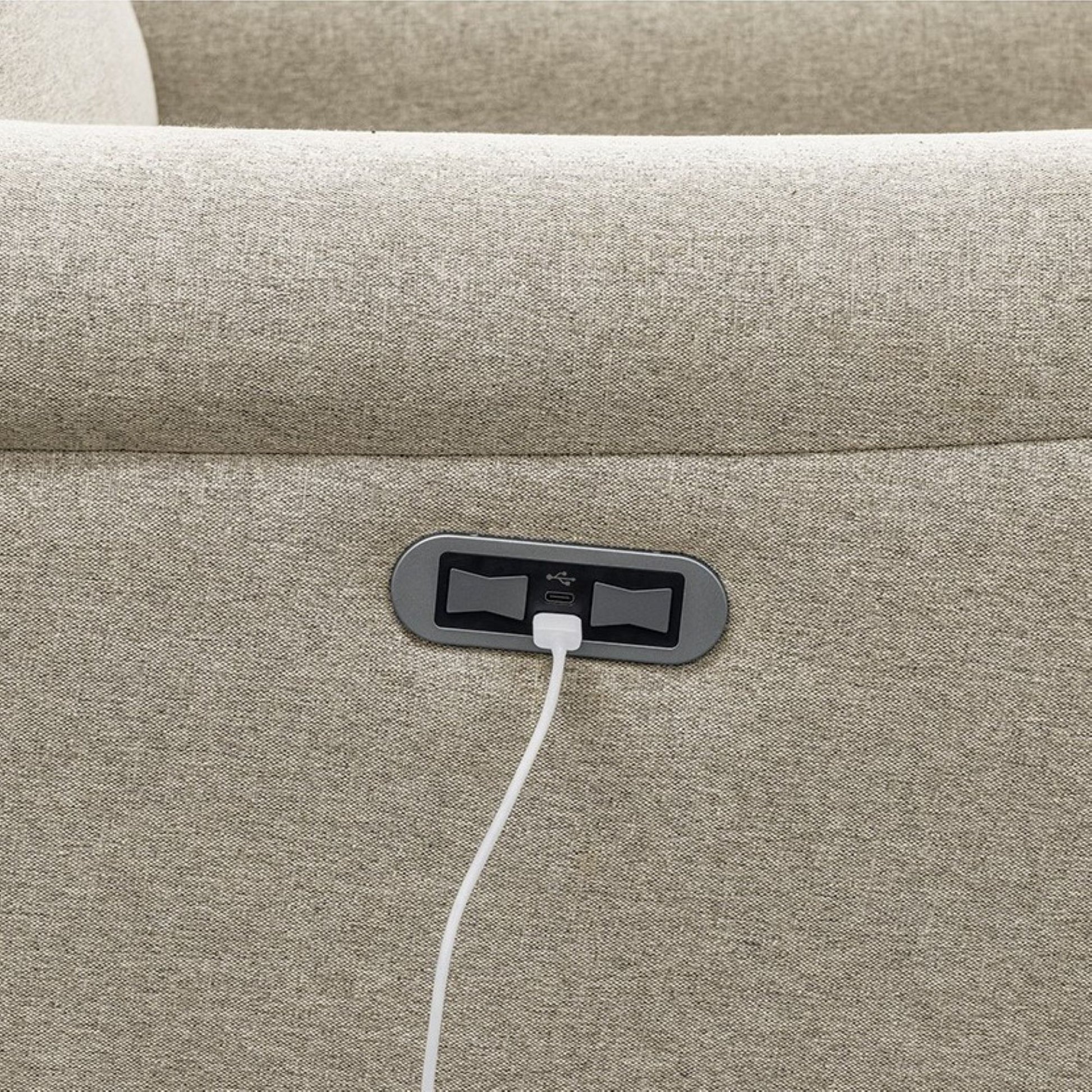 A fully upholstered power recliner with plush arms, rounded back, and a clean silhouette. Functions as a recliner, swivel chair, and glider with built-in USB and Type-C ports. Durable frame and tool-free assembly make it stylish and practical