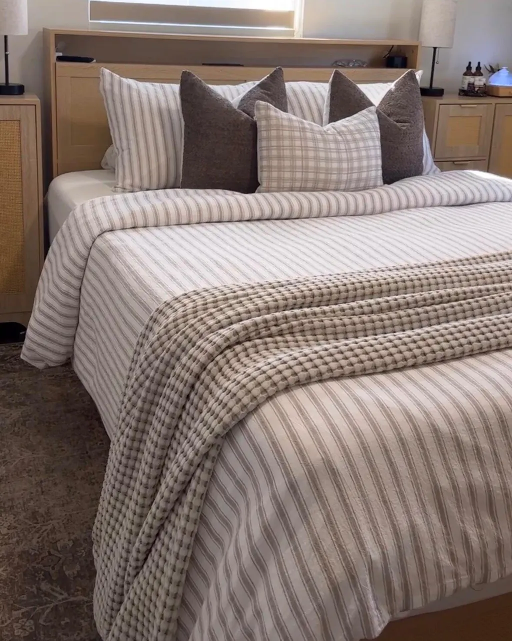 - Timeless Stripe Design - The classic yarn-dyed stripe pattern in soft hues adds casual charm to your bedroom, easily complementing your personal style.