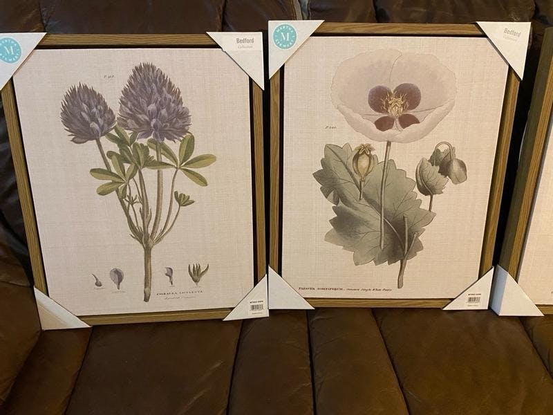 I cannot even begin to express how beautiful this 4 piece botanical illustration framed canvas wall art set is. The design is so amazing and the quality is definitely there! The frame choice for the canvas was perfect! They matched perfectly with my shower curtain that I already had and added so much more beauty to my bathroom. It almost feels like another room. I love them so much!
