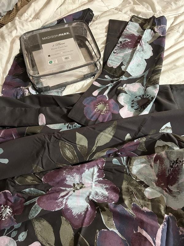 Transform your bedroom into a serene retreat with the Madison Park Jolene 3 Piece Cotton Floral Printed Duvet Cover Set, featuring a dark grey and plum floral pattern on a 100% cotton face for elegance and comfort. Designed in a shabby chic style with a soft cotton/poly back for durability, this set brings nature-inspired beauty and coziness to your decor.