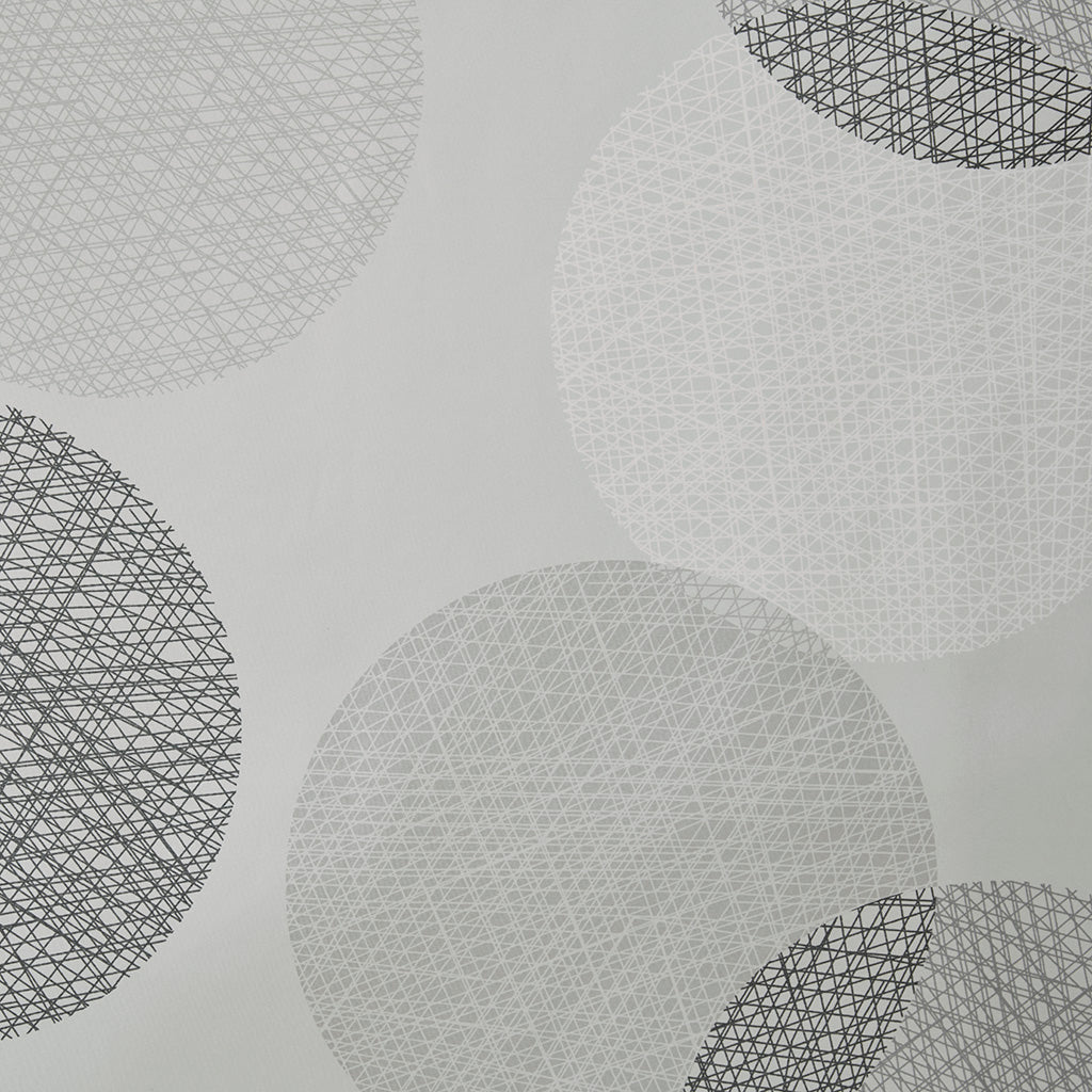 Knowles instantly updates your bathroom for a clean modern look. A circular print in different shades of gray covers this soft gray light weight shower curtain. Each shower curtain measure 72"x72" and is finished with 12 button holes at the top making it easy to hang.
