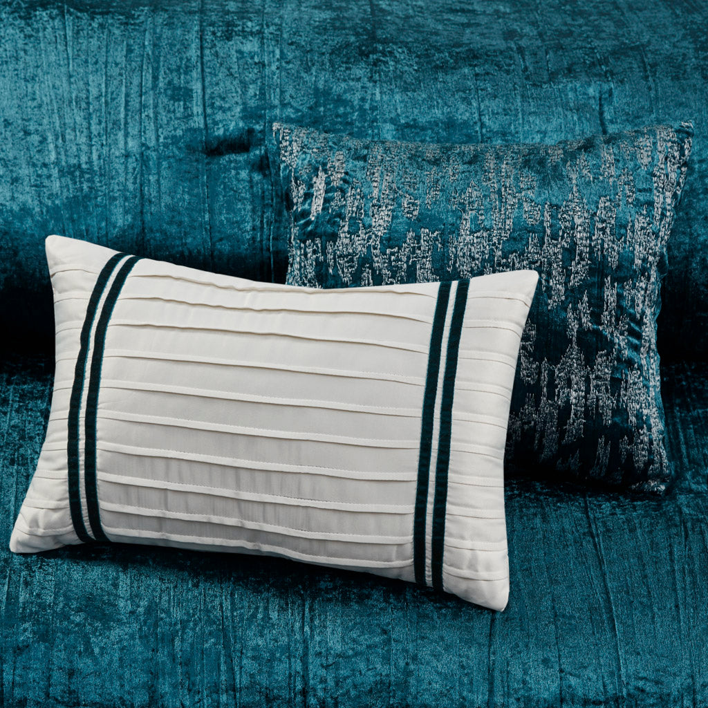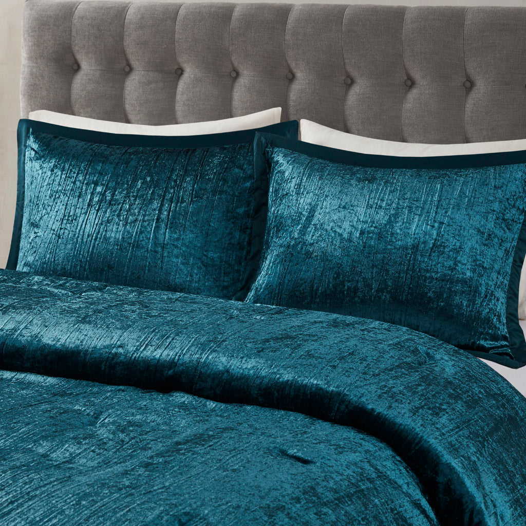 Give your bedroom a glamorous update with this luxurious crinkle velvet comforter set that exudes style and comfort. Also included are two coordinating decorative pillows featuring pleated and embroidery details.