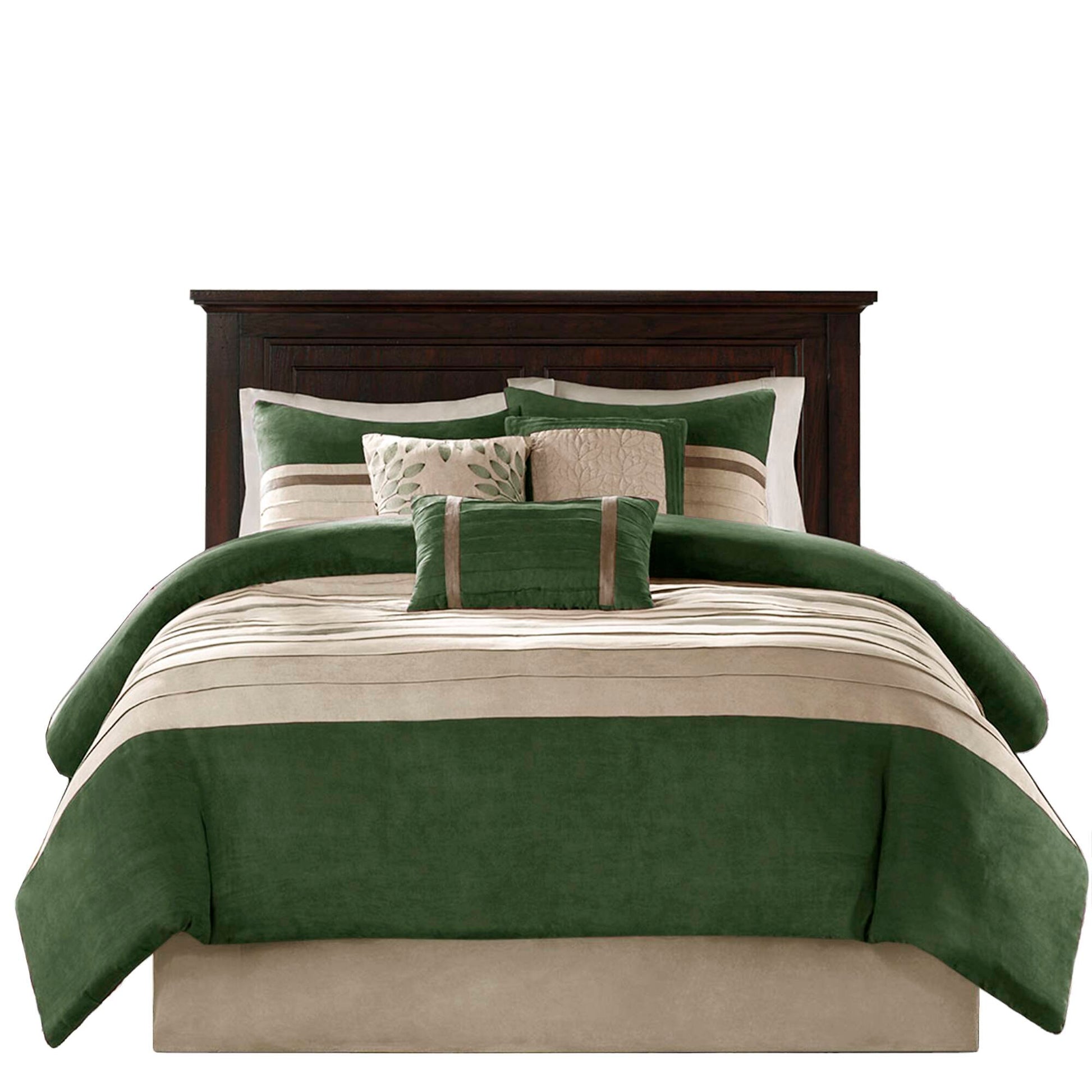 Material details: Faux suede face, microfiber back comforter and shams, 8oz/sq yard polyester filling, faux suede bed skirt and pillows
