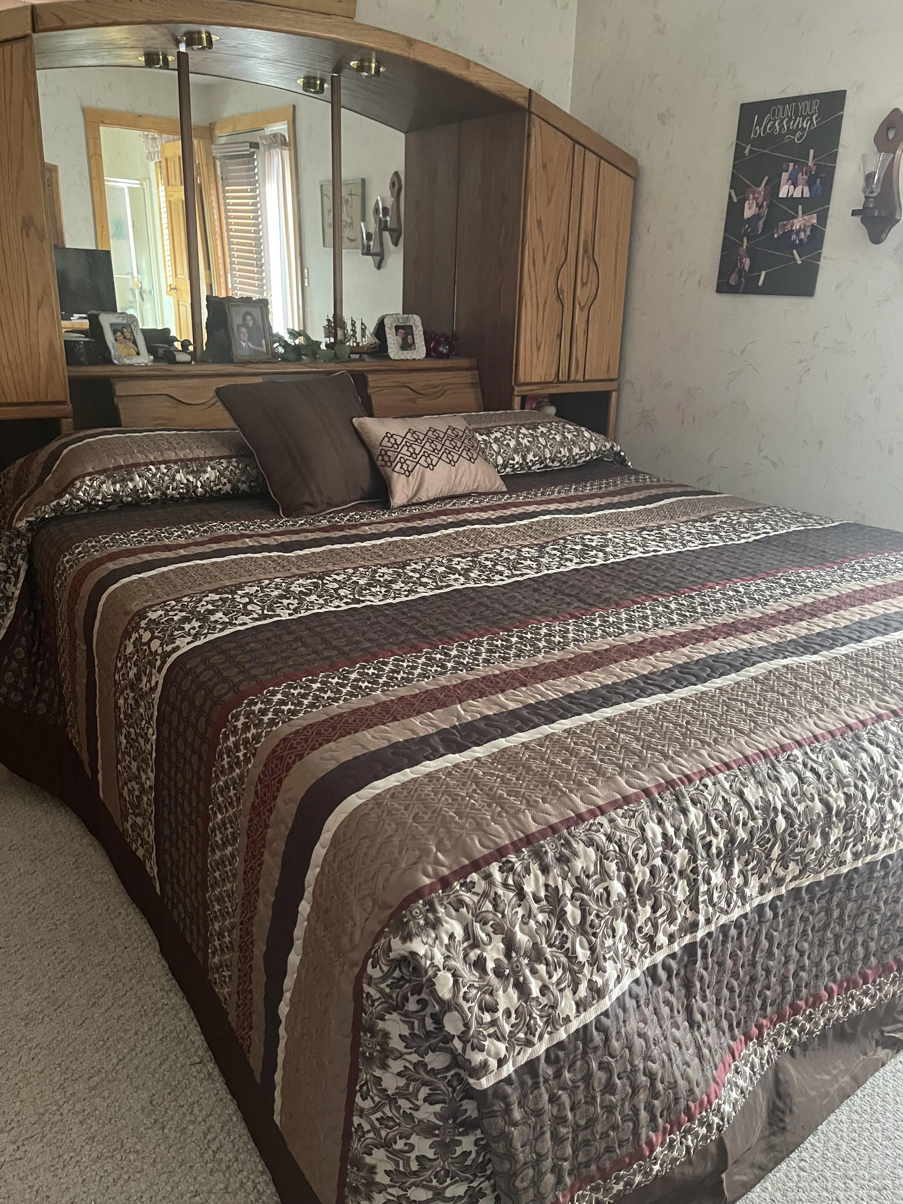 This 5 piece reversible bed spread is made to last and will definitely add color and style to your bedroom. The bedspread is bright and cheerful and the beautiful pillows are soft and inviting. I love how warm and well made this bed spread is. You will love this beautiful well made bedspread as it will definitely add style to your home.
