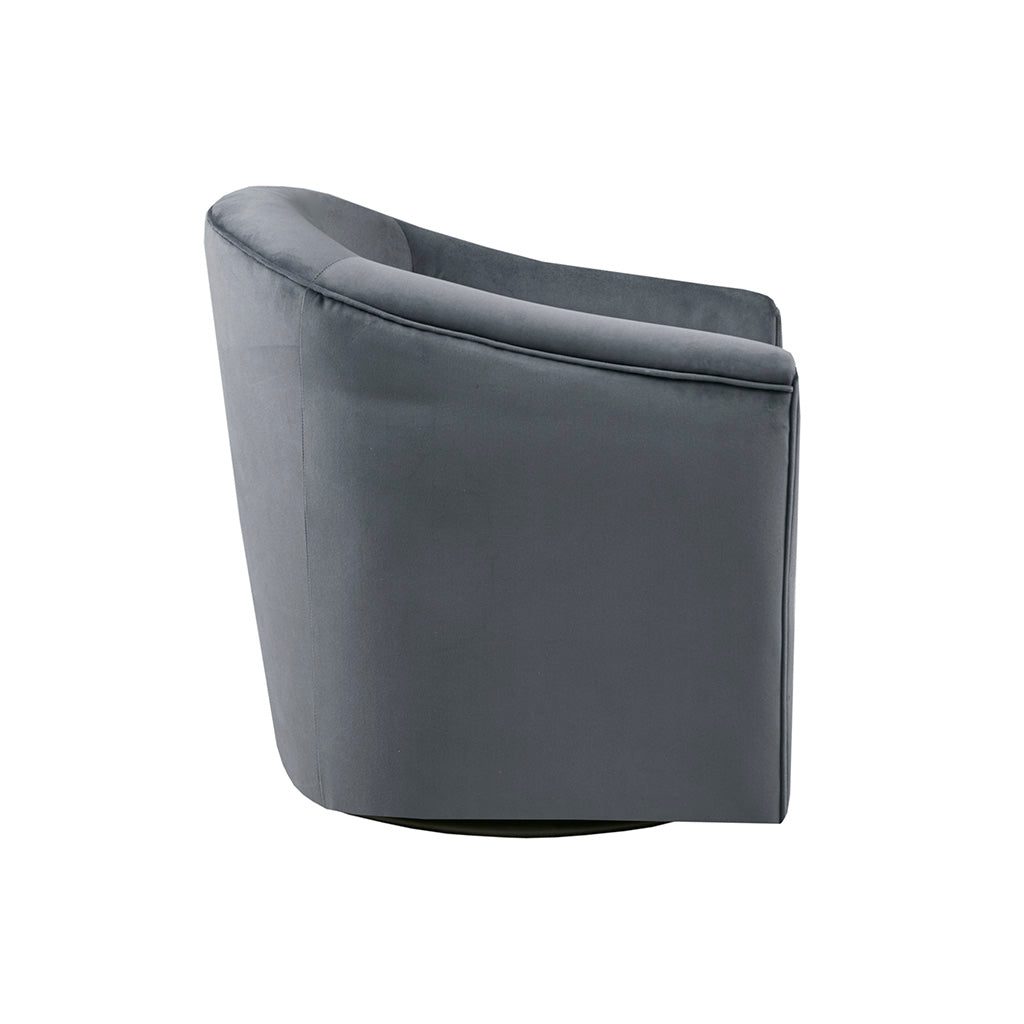 The Ryker Swivel Chair by Madison Park offers a luxurious blend of comfort and style to update your living room. This swivel chair features a round back and armrests with a horizontal channel that adds dimension to the transitional design.