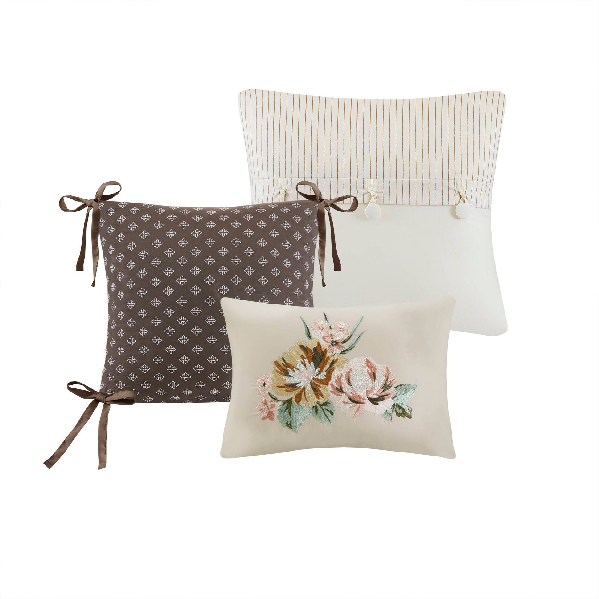 - Complete 7-Piece Set - Revitalize your bedding easily with this set, featuring 3 decorative pillows with embroidered florals, charming bows, and stylish buttons, plus a matching bed skirt for a chic, polished look.