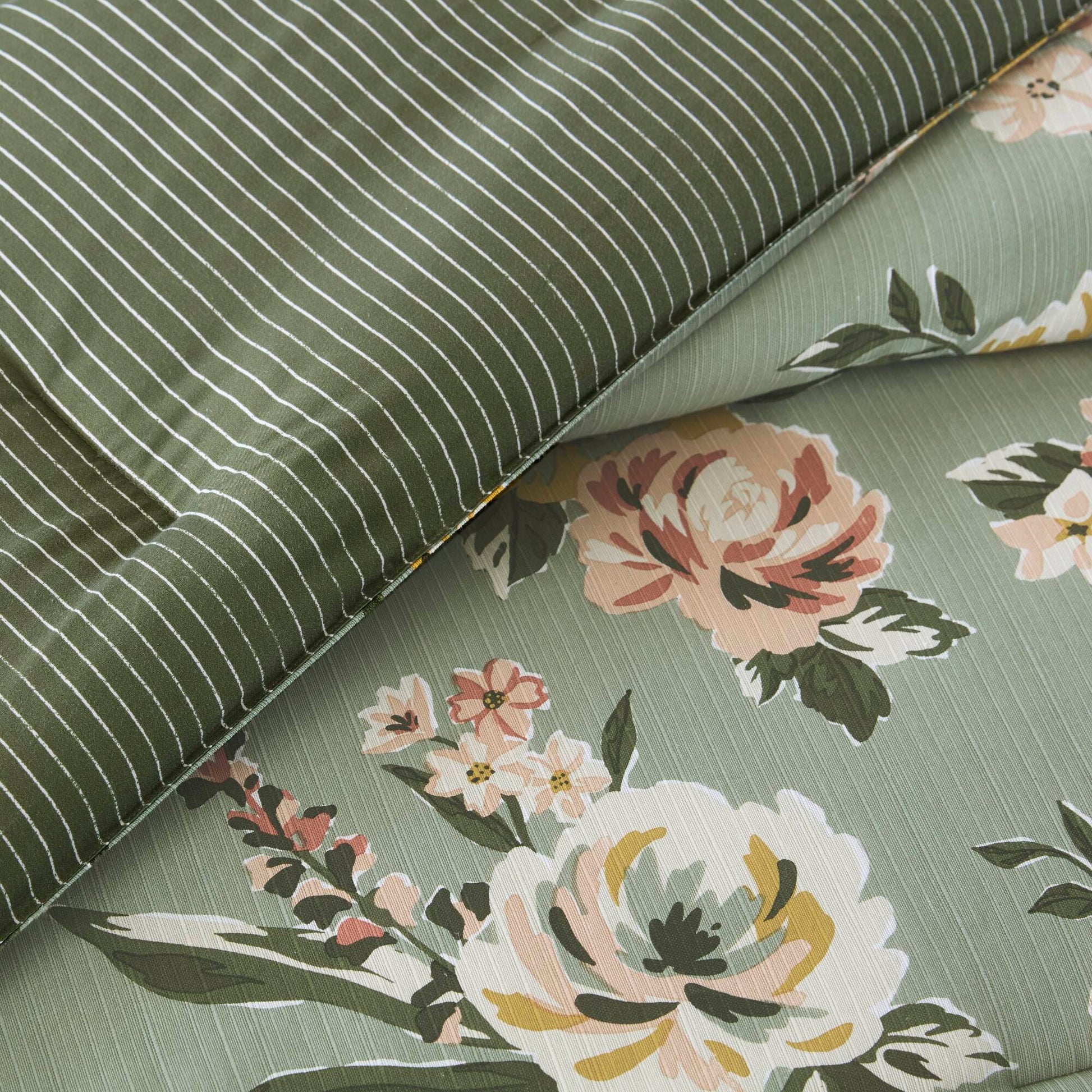 Elevate your bedroom with the vintage floral bedding set, exuding shabby chic charm. Featuring a floral print with slub texture and a stripe reverse, it offers a sophisticated finish and a 2-in-1 refresh—perfect for a timeless yet versatile look.