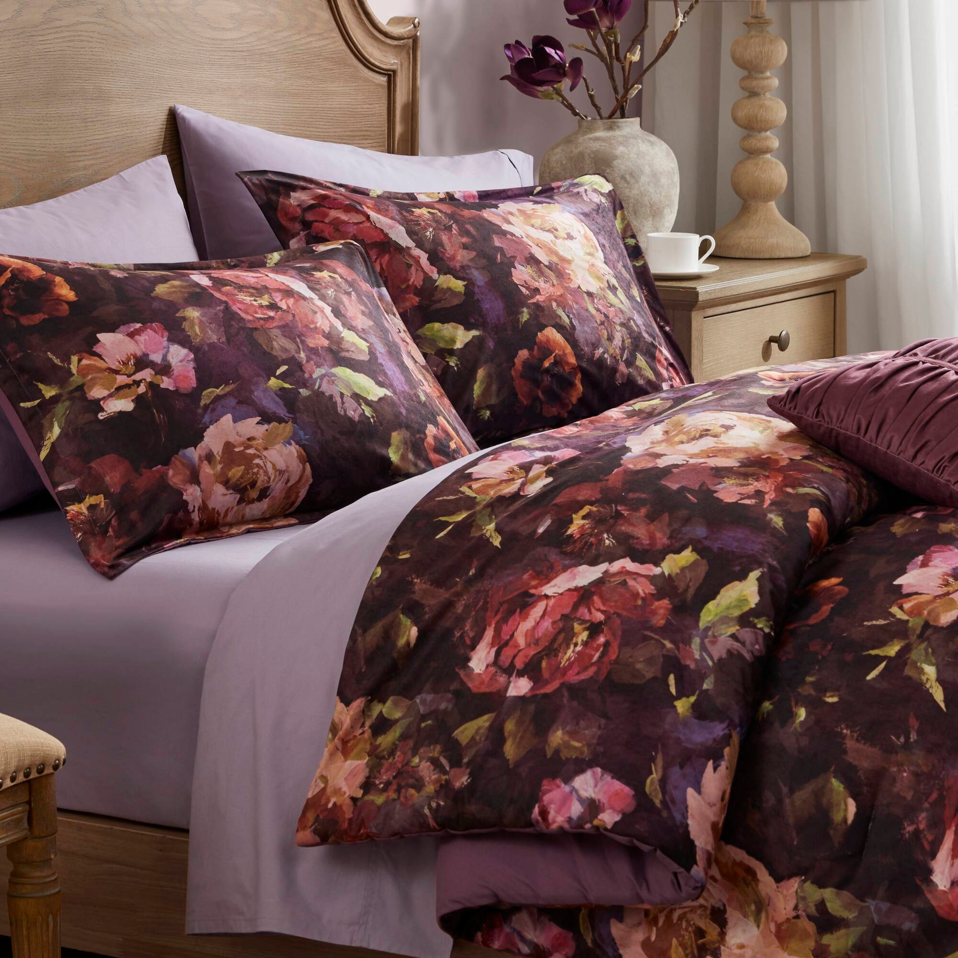 A refined comforter set featuring a soft velvet face with an elegant floral design. Finished with a lightweight polyester reverse and a ruched velvet accent pillow, it adds cozy texture and timeless style to your bedroom.