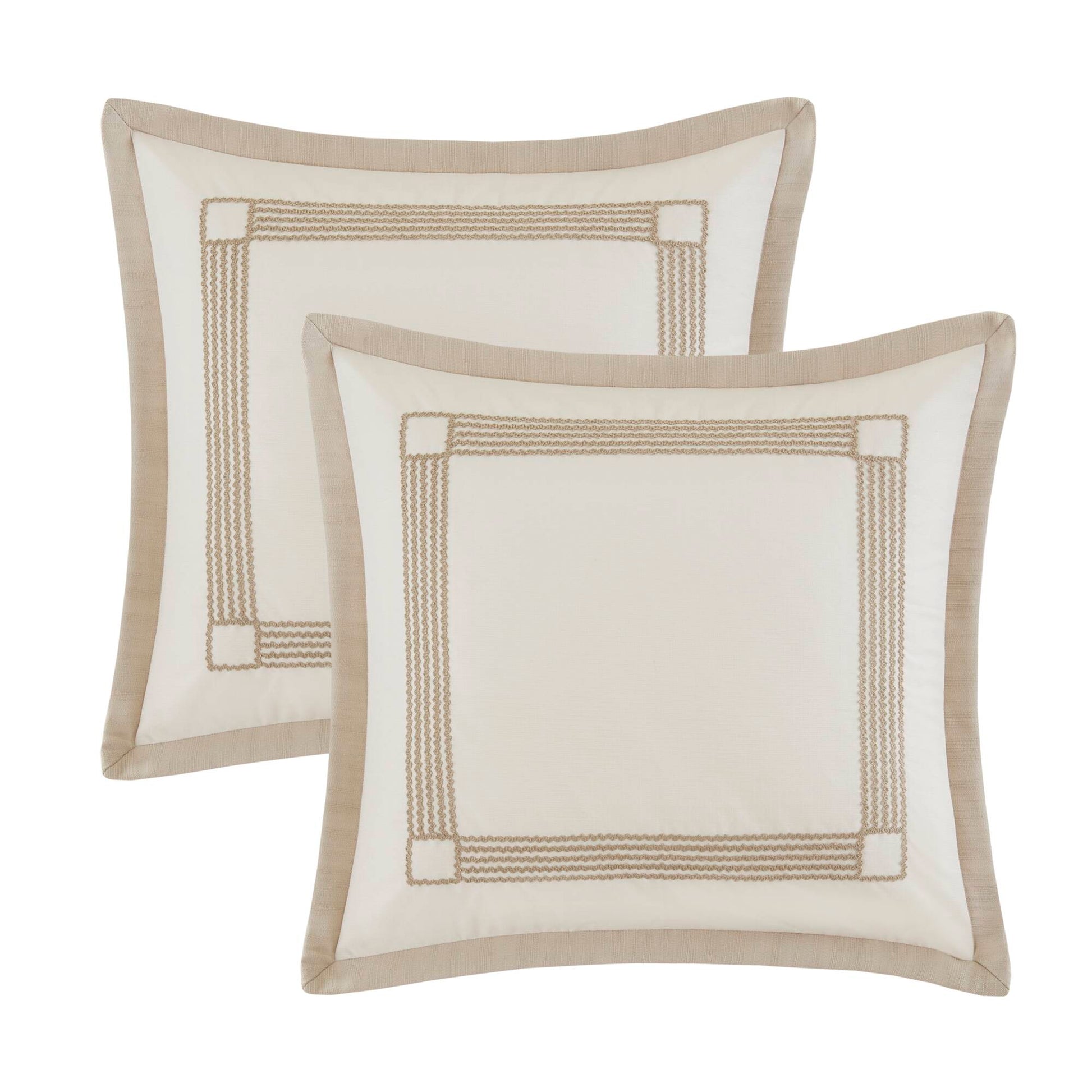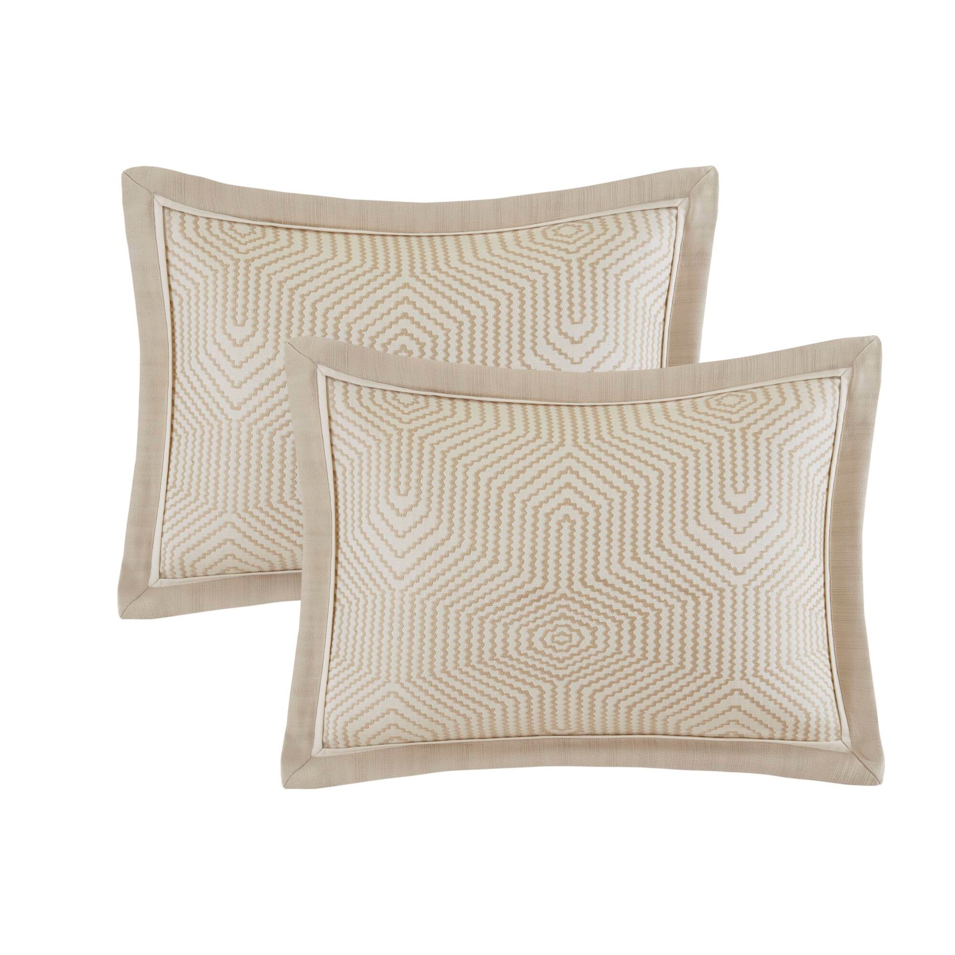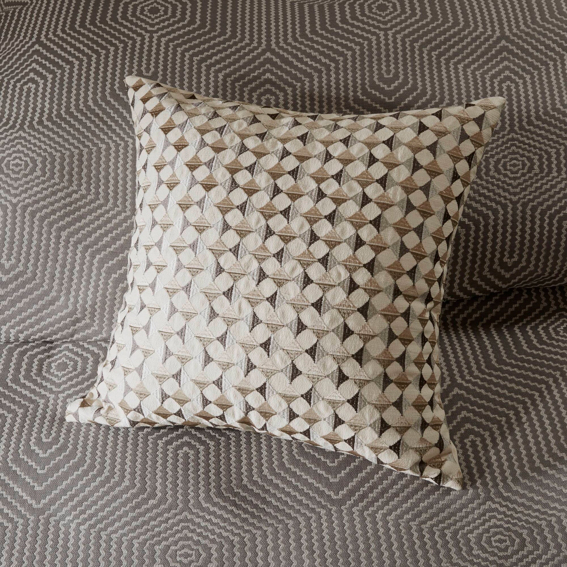 Revamp the bedroom with this graceful yet stunning Shades of Grey Comforter Bedding Set from Madison Park Signature. This grey and ivory set includes a comforter, 2 standard shams, 2 Euro shams (3 in King) and 3 decorative pillows in coordinating hues.