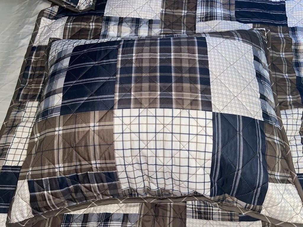 - quilt and shams have cotton filling with channel quilting