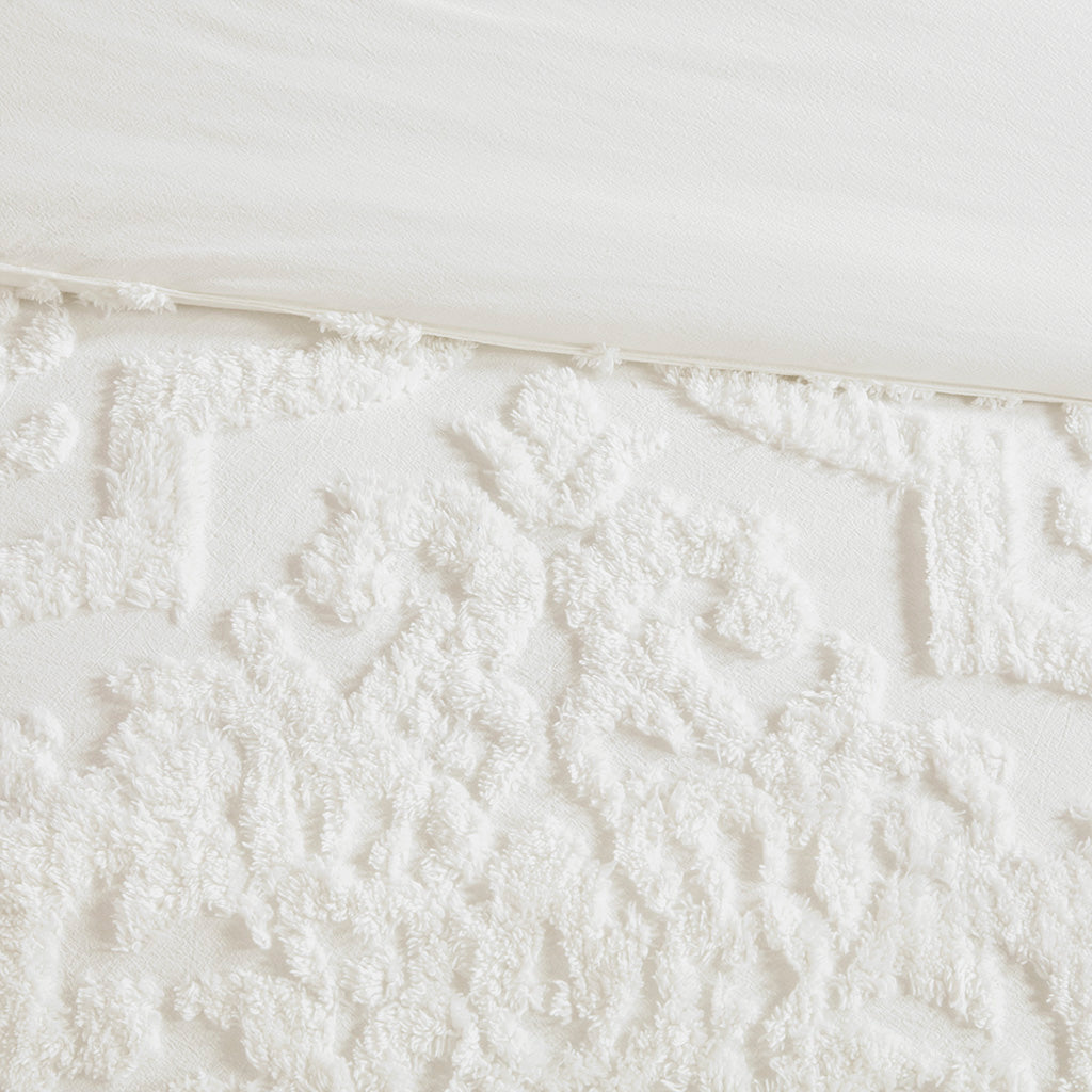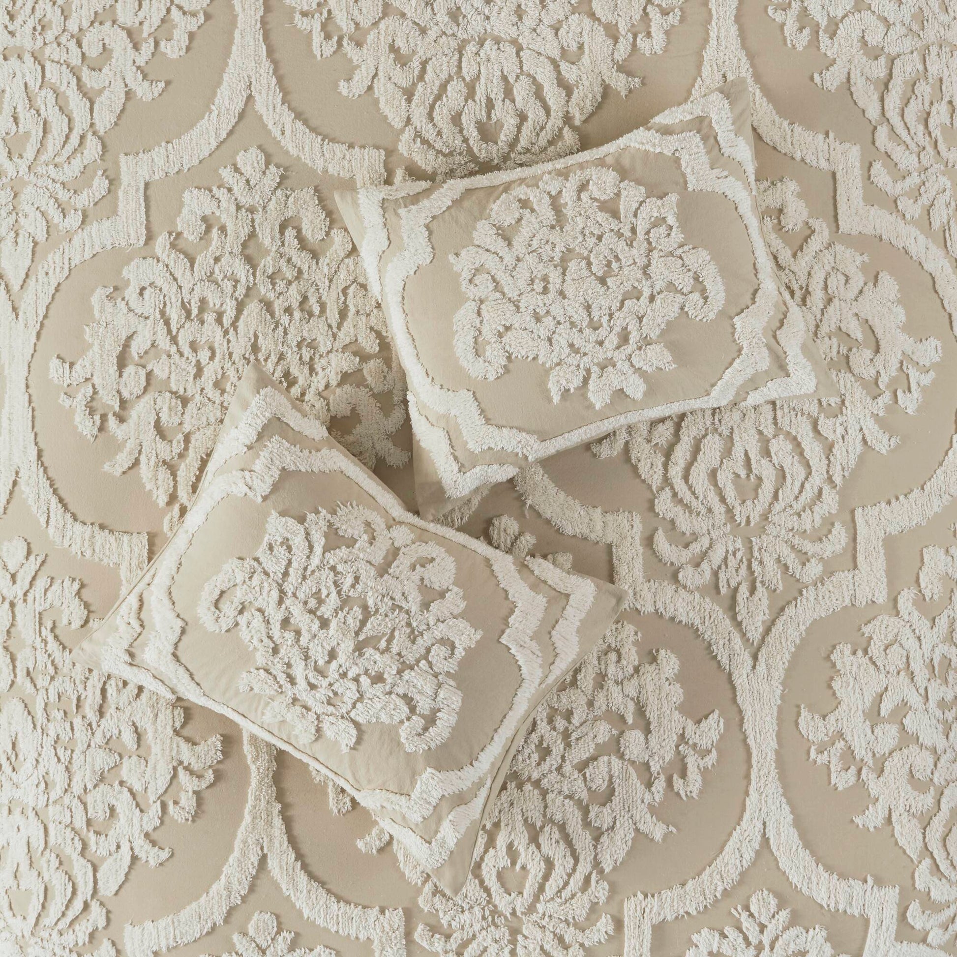Viola 3 piece Tufted Cotton Chenille Damask Comforter Set