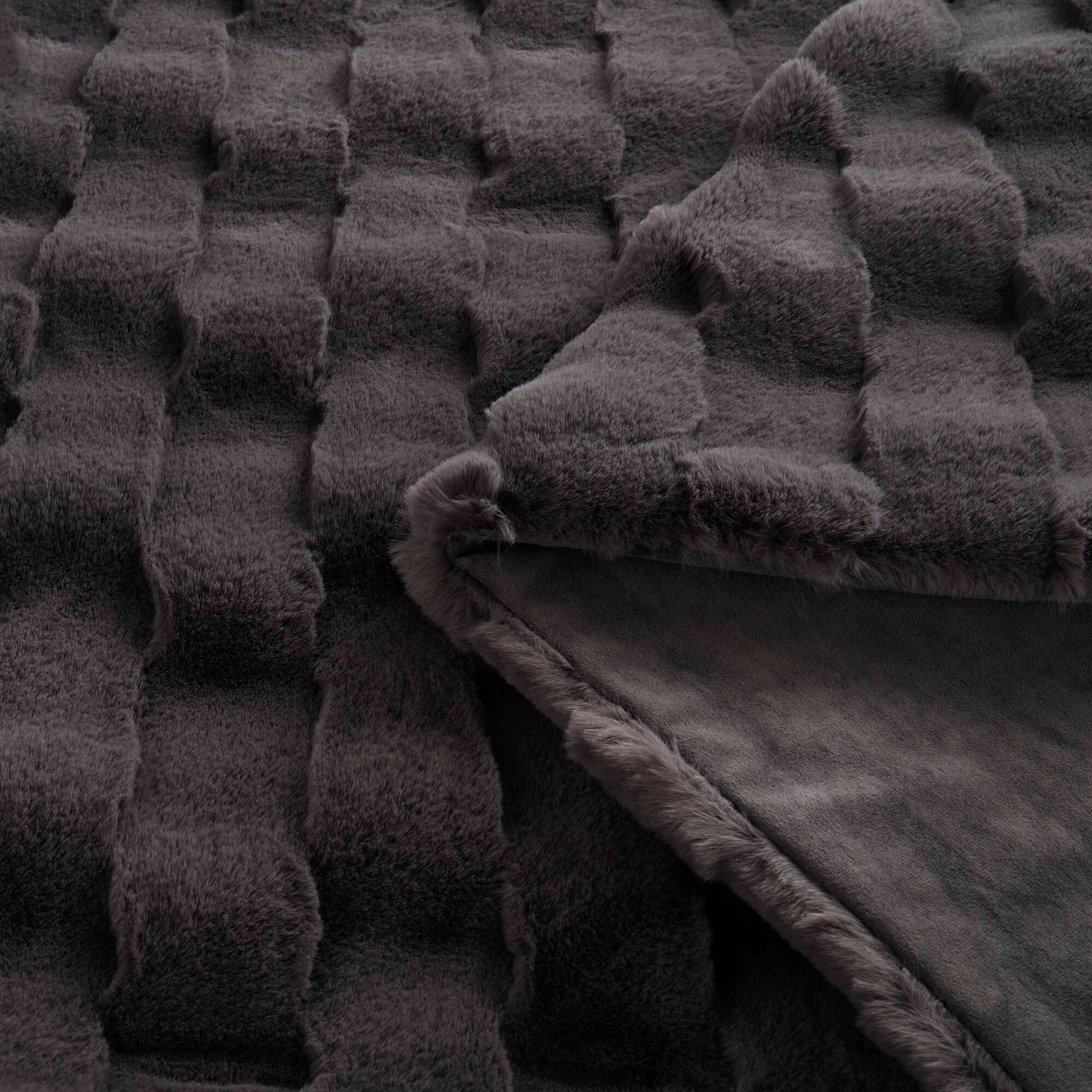 - Faux fur face with basketweave texture provides warmth and luxury