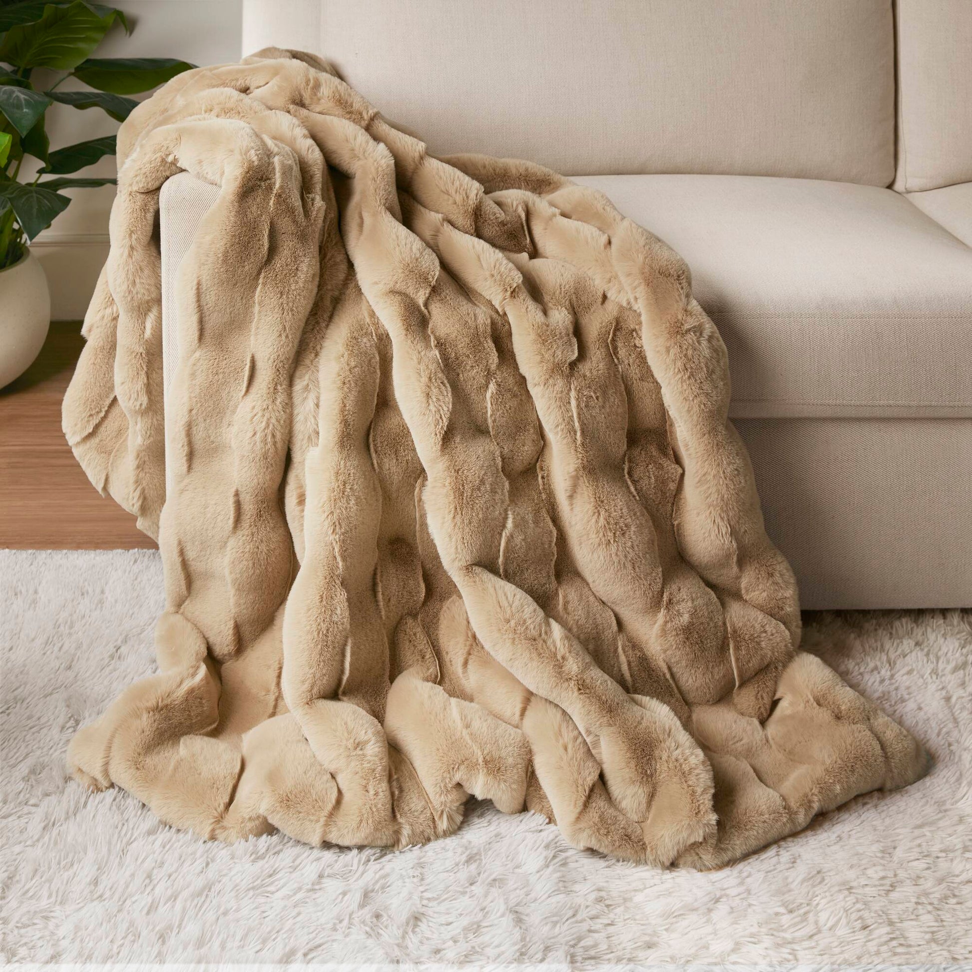 This faux fur throw combines the best of luxury and warmth for your living room, while the neutral color options add a touch of elegance and sophistication to any decor style.